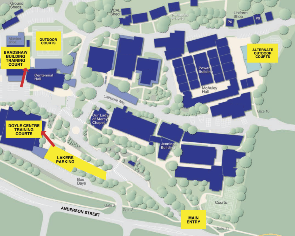 All Lakers teams train at Mount Lilydale Mercy College in either the Doyle Centre gymnasium or Bradshaw Building (Old Gym).